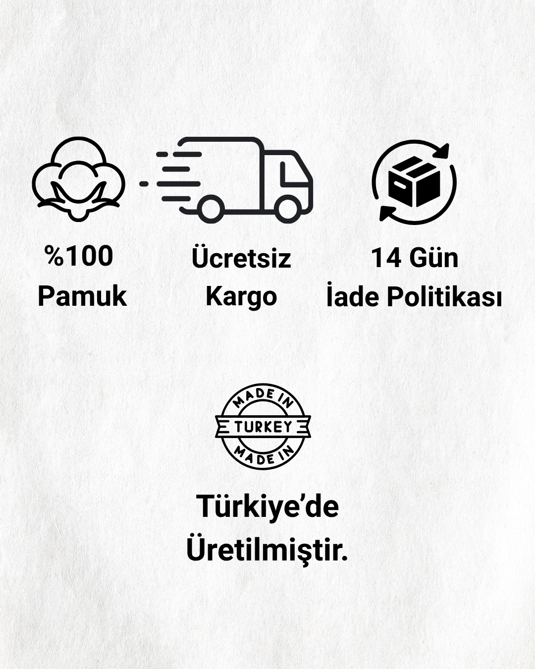 %100 pamuk ve solmaya karşı dayanıklı özel dokusu ile uzun ömürlü kullanım sunar.